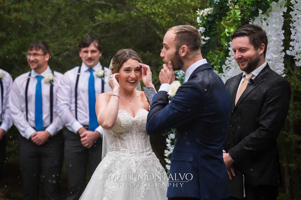 Rain rarely ruins a wedding — but stress can. This couple chose joy, and it made all the difference.