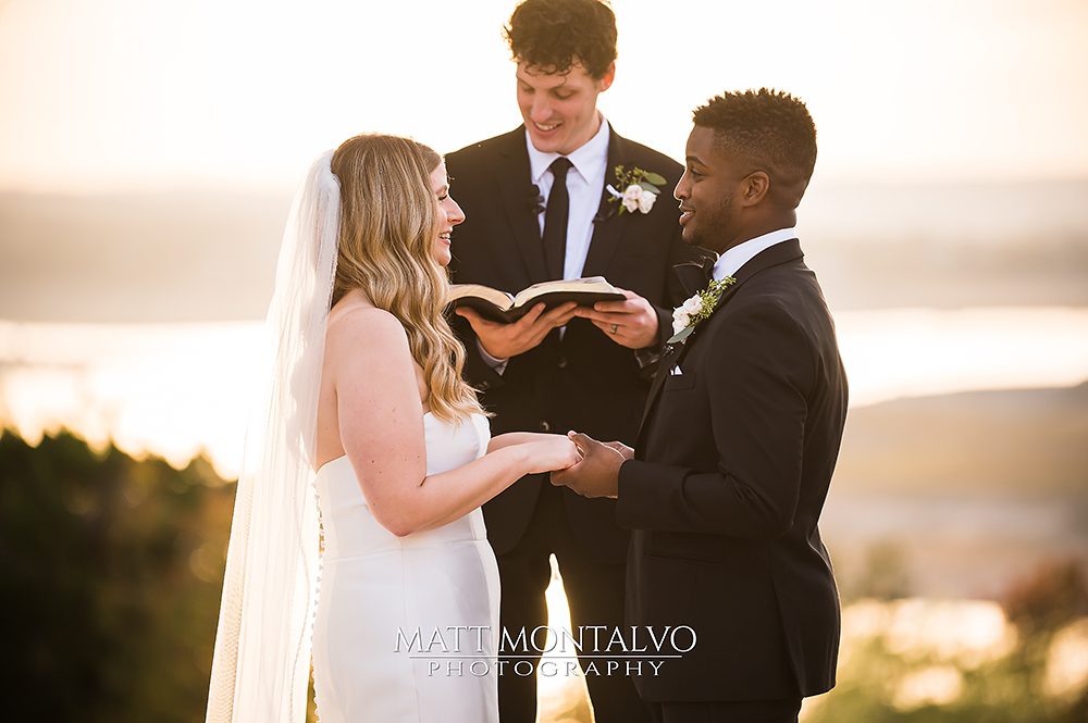 The highlight of Ellen and John’s wedding day was undoubtedly their sunset ceremony. The couple exchanged vows beneath a floral-adorned arch overlooking the tranquil waters of Lake Travis. As the sun painted the sky in hues of pink and gold, the atmosphere became charged with emotion, creating a breathtaking backdrop for the heartfelt promises made between the bride and groom. Matt, the Austin-based wedding photographer skillfully captured every moment, ensuring that the essence of this sunset ceremony would be preserved forever in their wedding album.